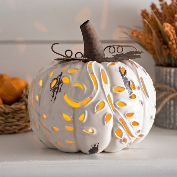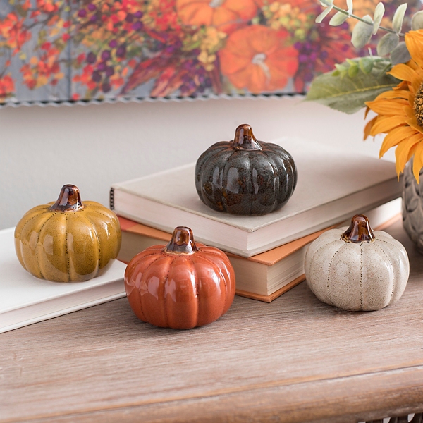 Gift boutique pumpkin decorations for halloween and thanksgiving 3 mini ceramic lighted pumpkins home party holiday decor figurines for fireplace mantle shelf quality ceramic statues 5 0 out of 5 stars 5.
