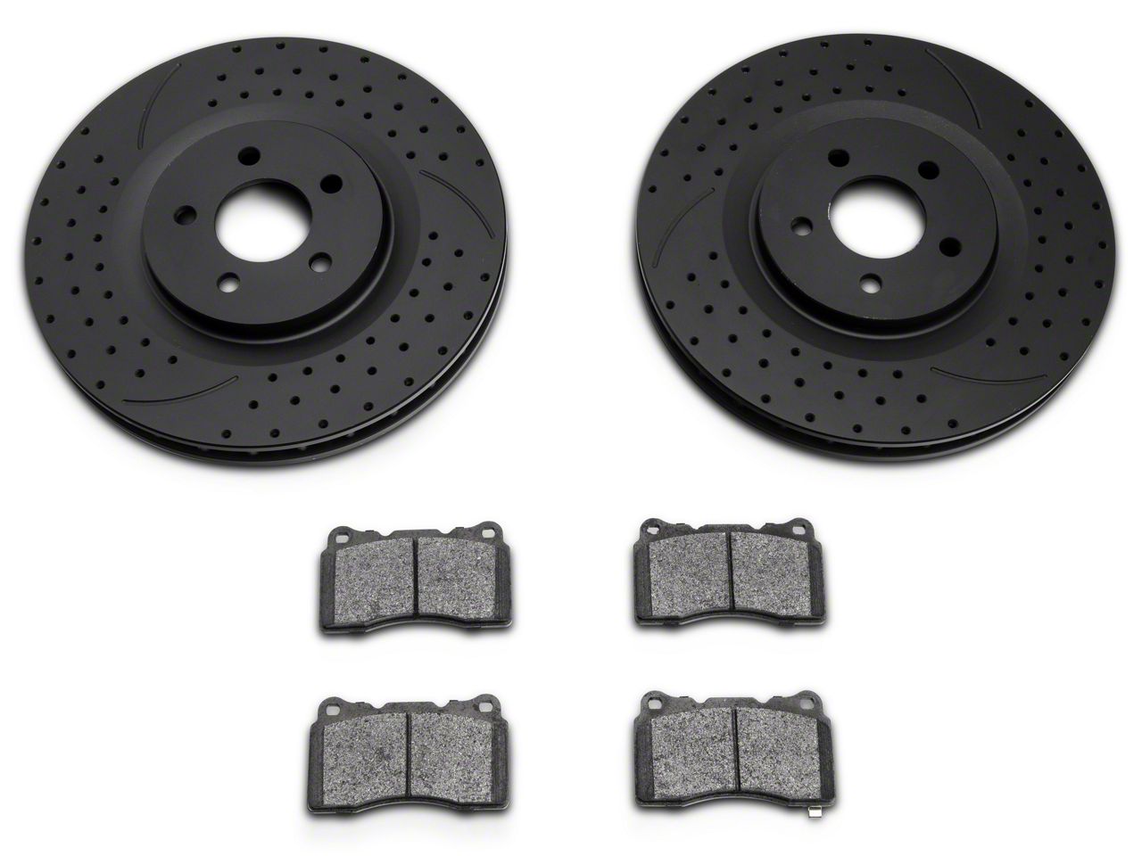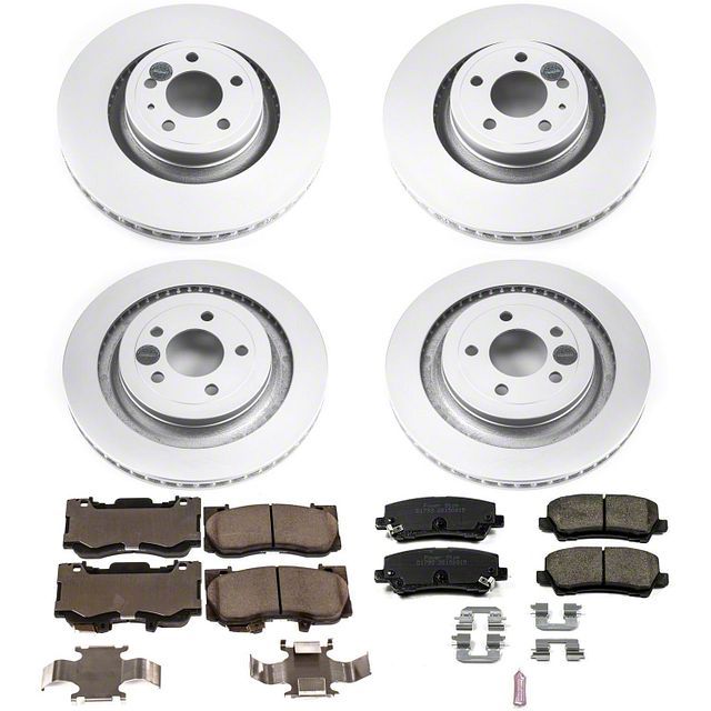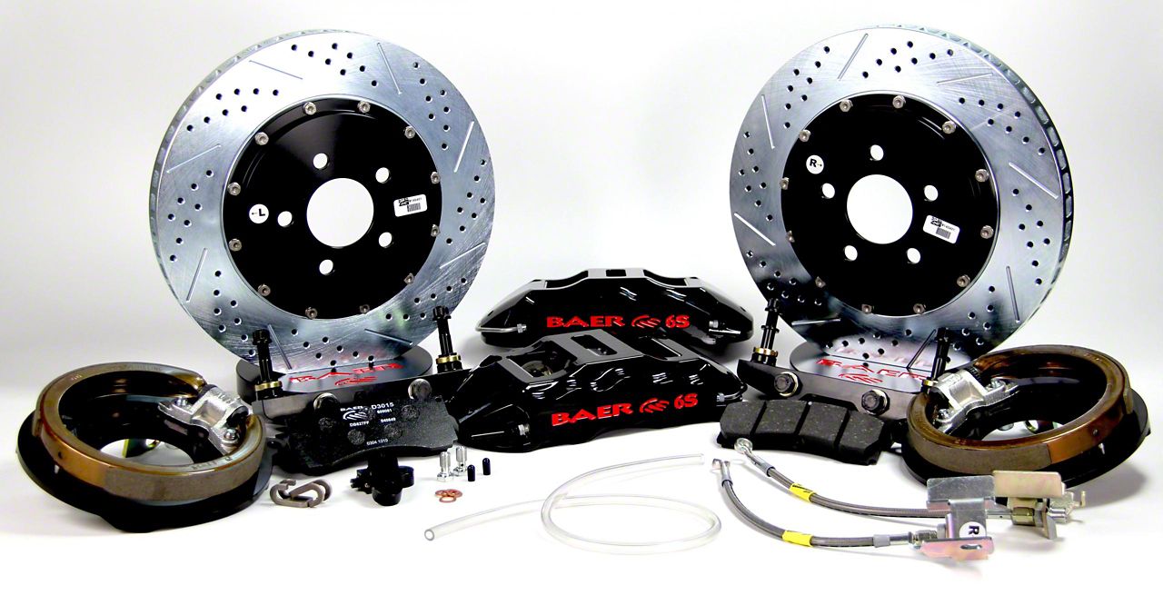 This oe replacement brake rotor pad kit includes everything you need to upgrade your mustang s braking in the front including 2 front rotors 2 pairs of front brake pads 2 rear rotors 2 pairs of rear brake pads 1 bottle of high temperature brake lubricant and 1 stainless steel hardware kit backed by a 90 day 3 000 mile limited.