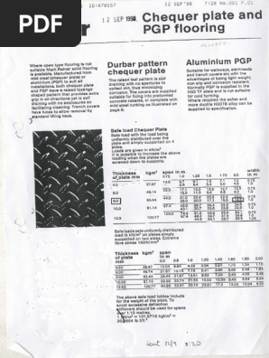 Chequer plate flooring load tables.